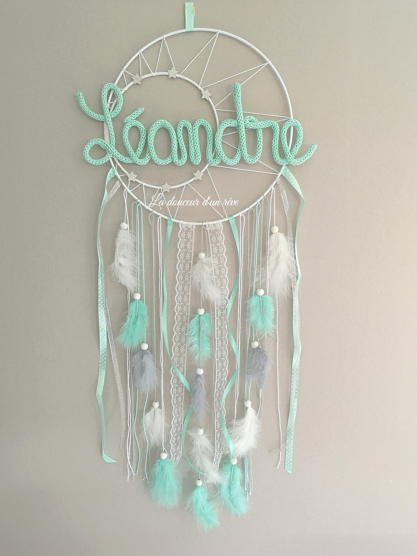 Attrape rêve double cercle en tricotin personnalisable.