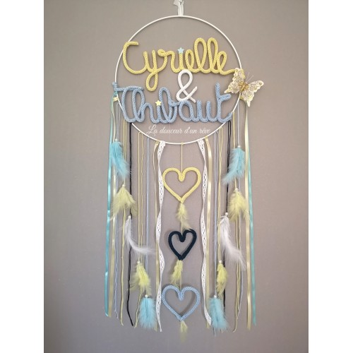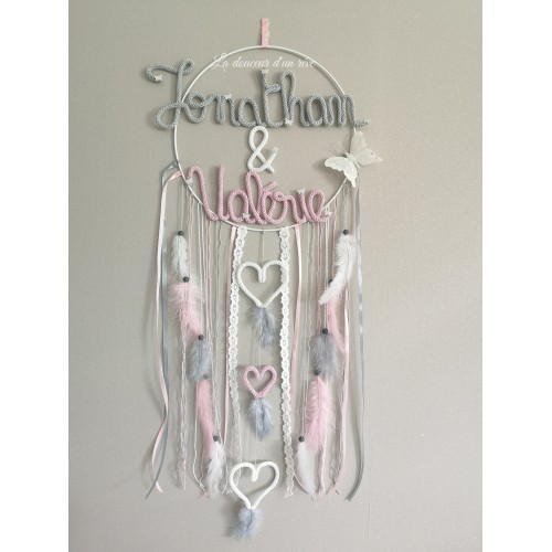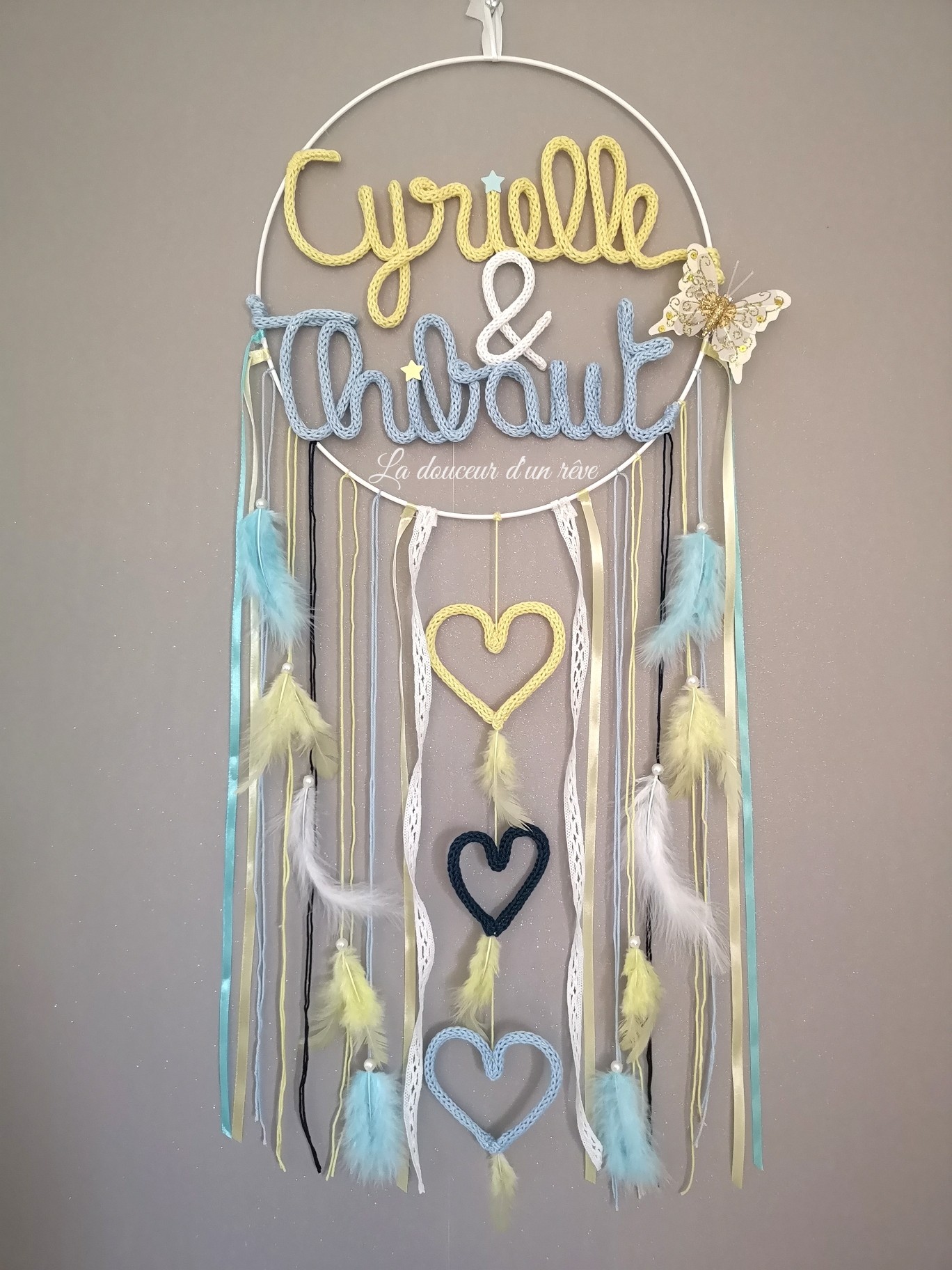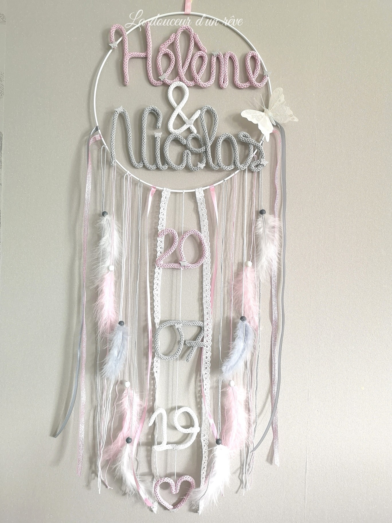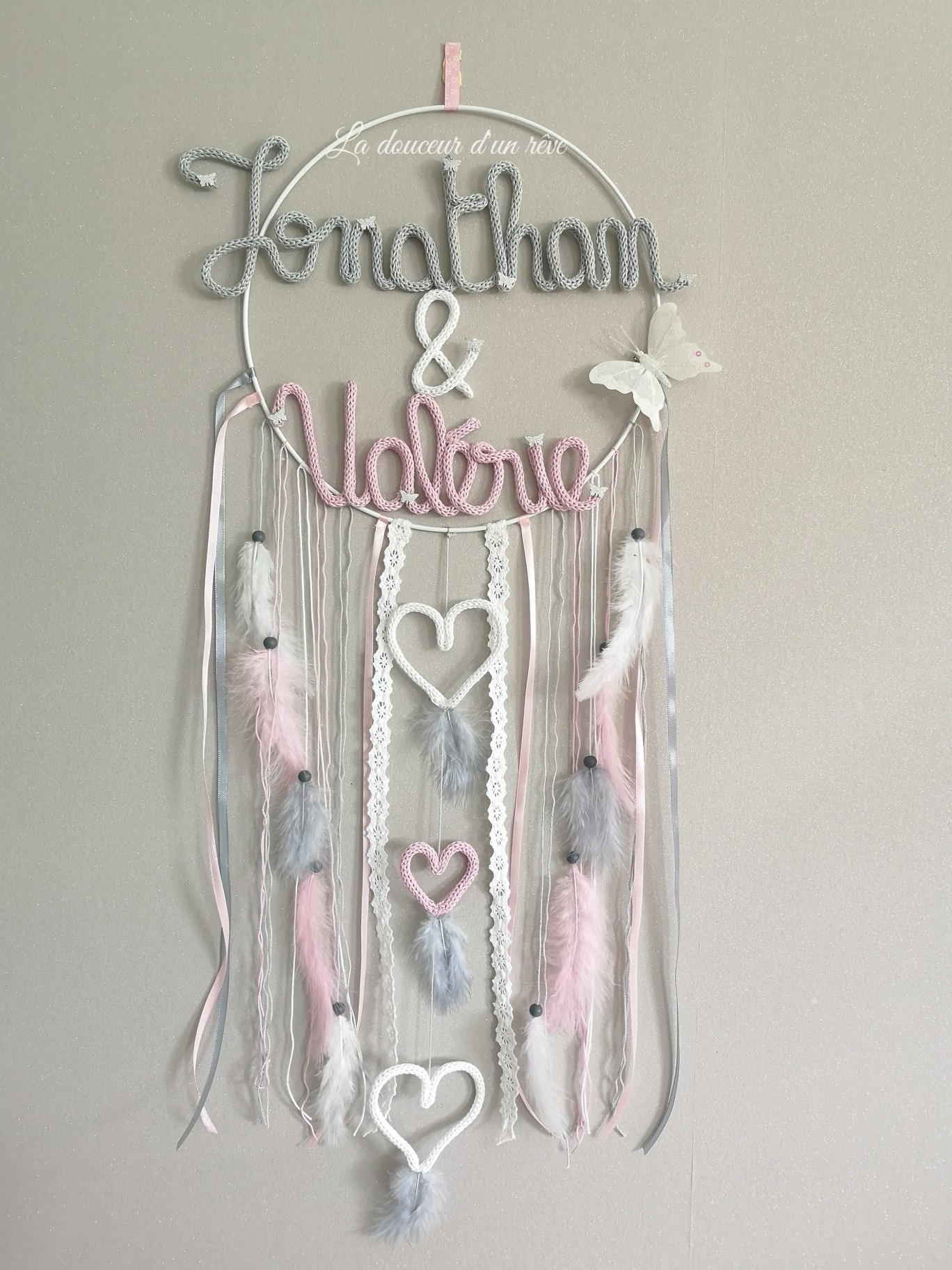 Attrape rêve Mariage double prénom en tricotin personnalisable.