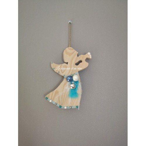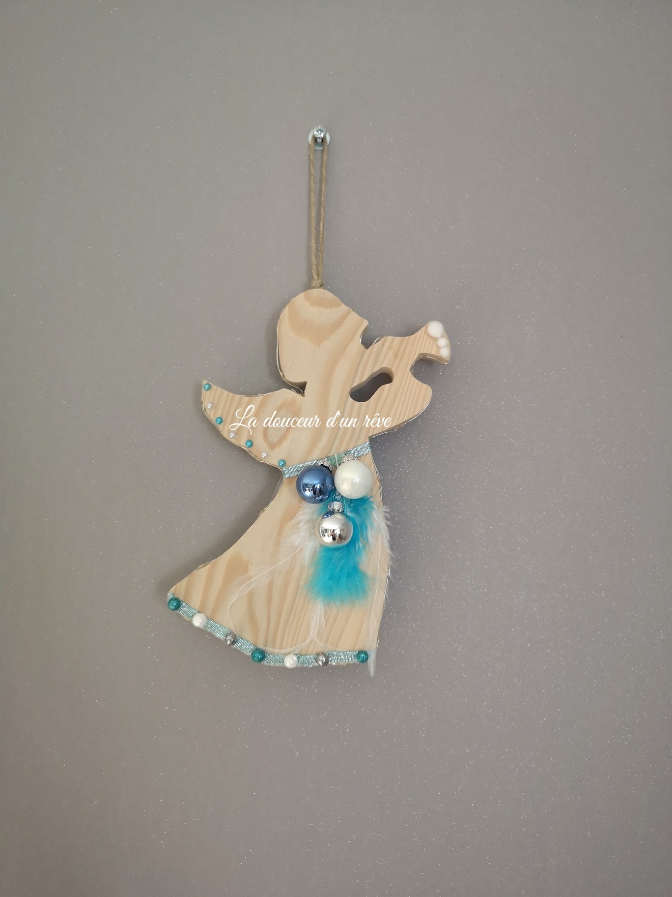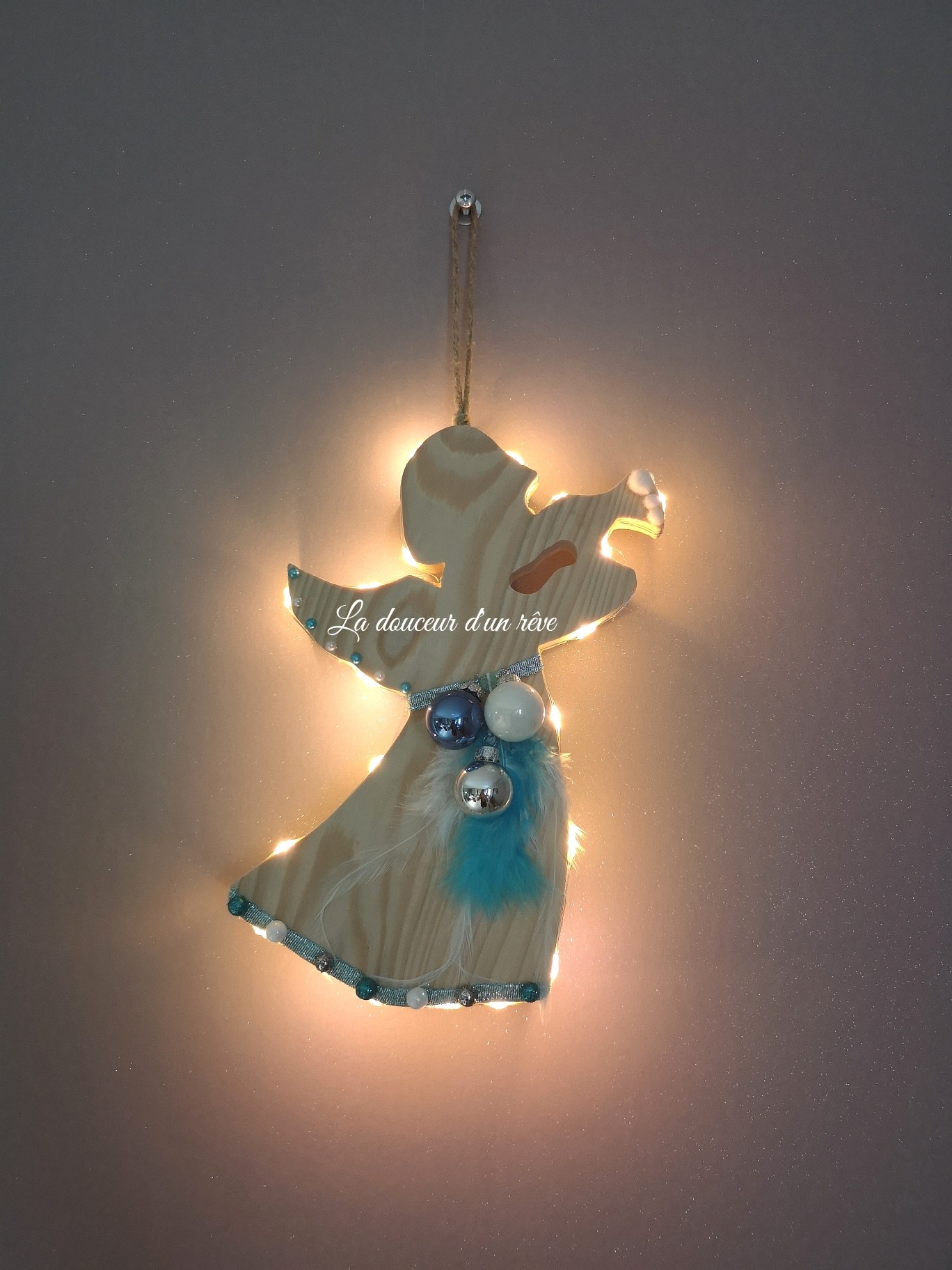 Décoration de Noël en bois, ange lumineux leds blanc et bleu