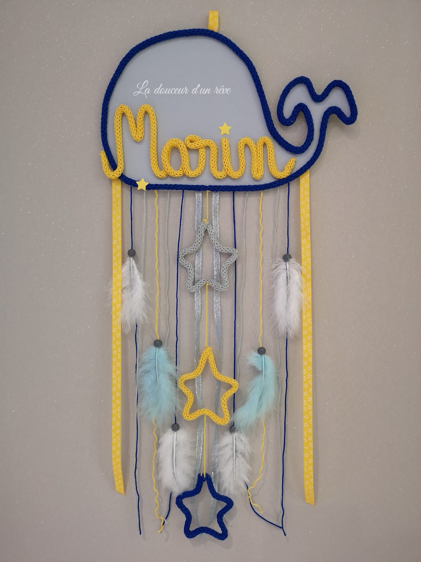Dimension totale de la baleine avec les fils : environ 27 cm de large sur 47 cm de long. Les attrape rêves étant réalisés à la main, les dimensions peuvent varier un petit peu.