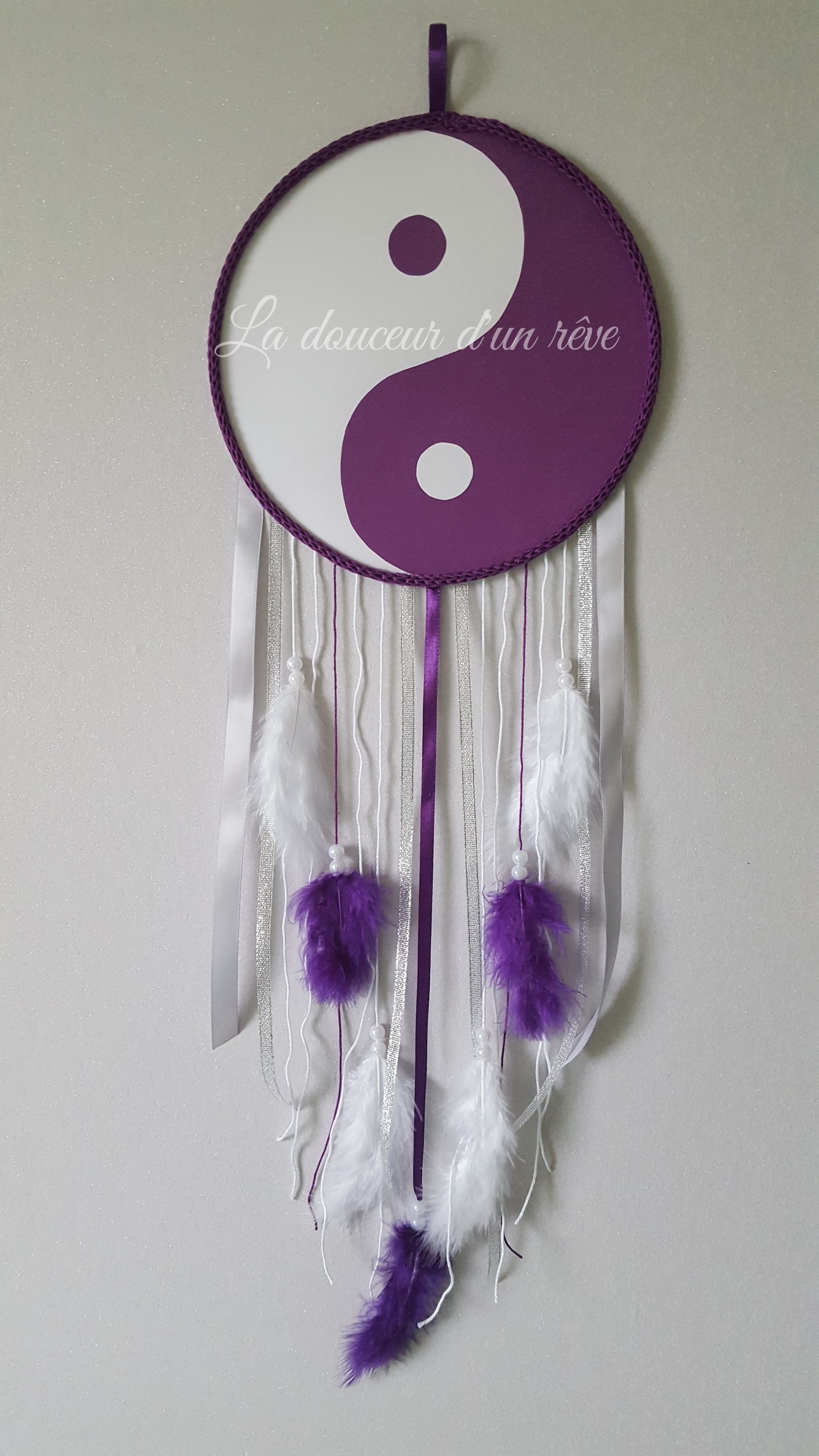 Attrape rêve Yin Yang en tricotin personnalisable.