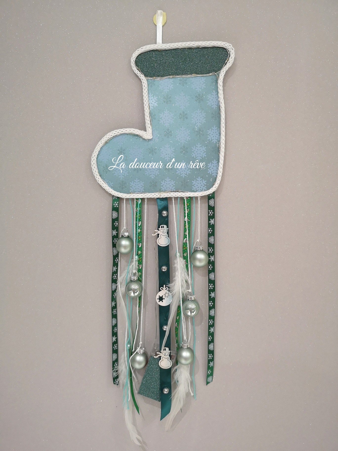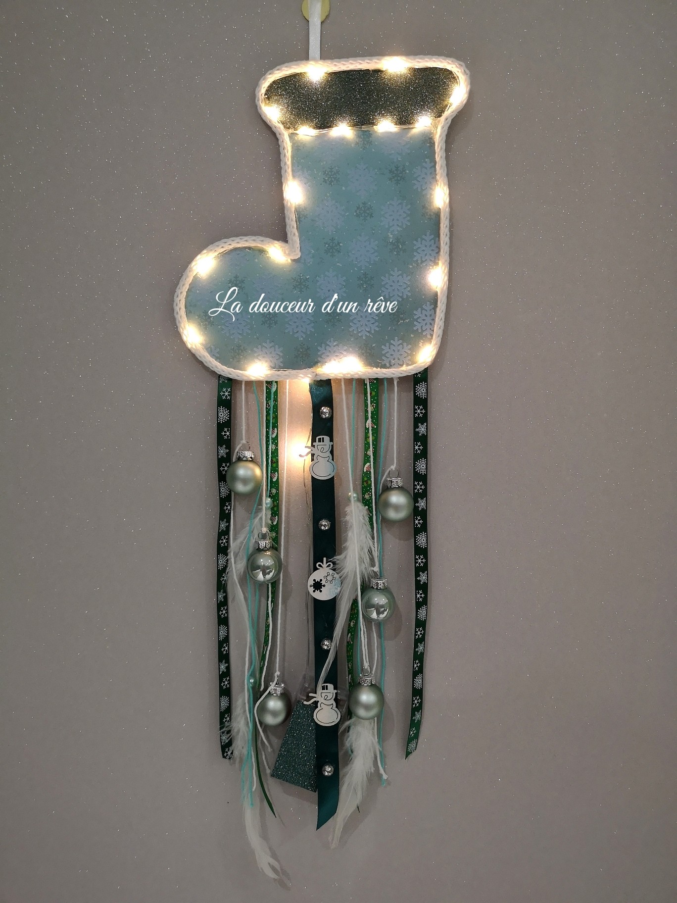 Décoration de Noël en tricotin, botte lumineuse , boule de noël