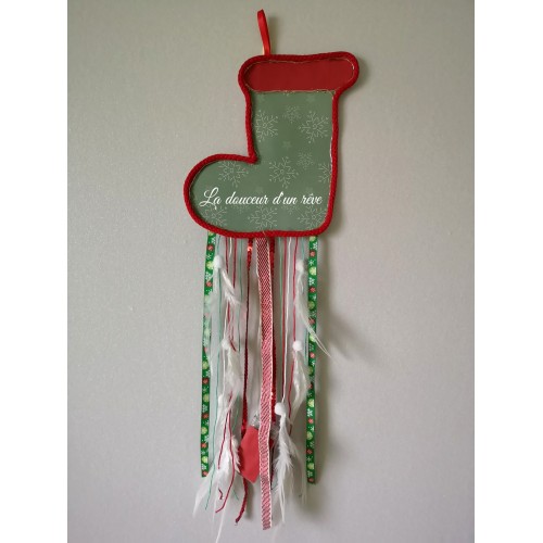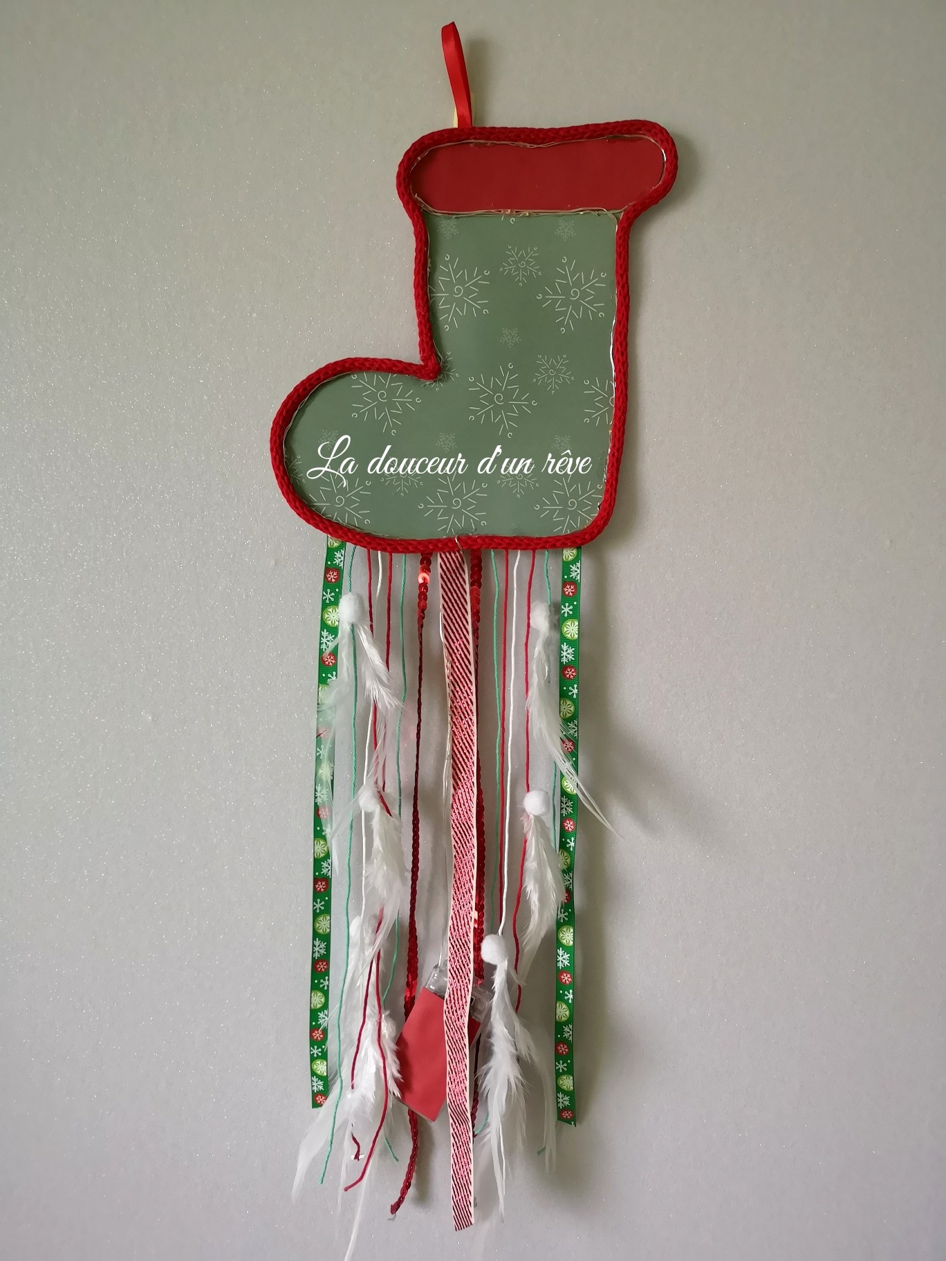 Décoration de Noël en tricotin, botte lumineuse verte et rouge , boule de noël