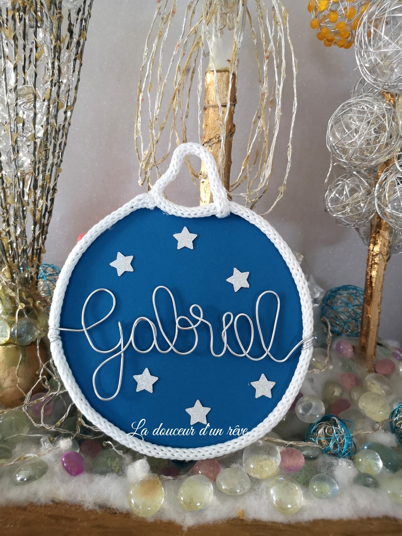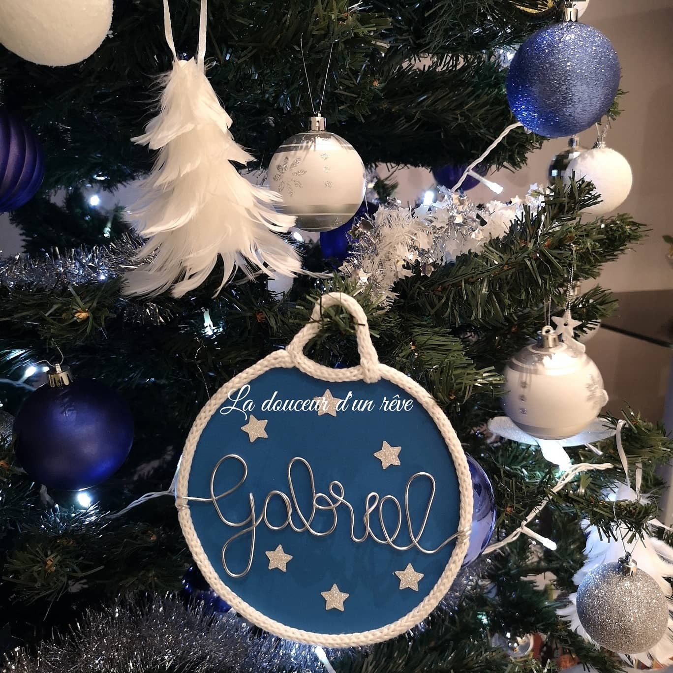 Grande boule de Noël en tricotin personnalisable avec prénom en fil aluminium