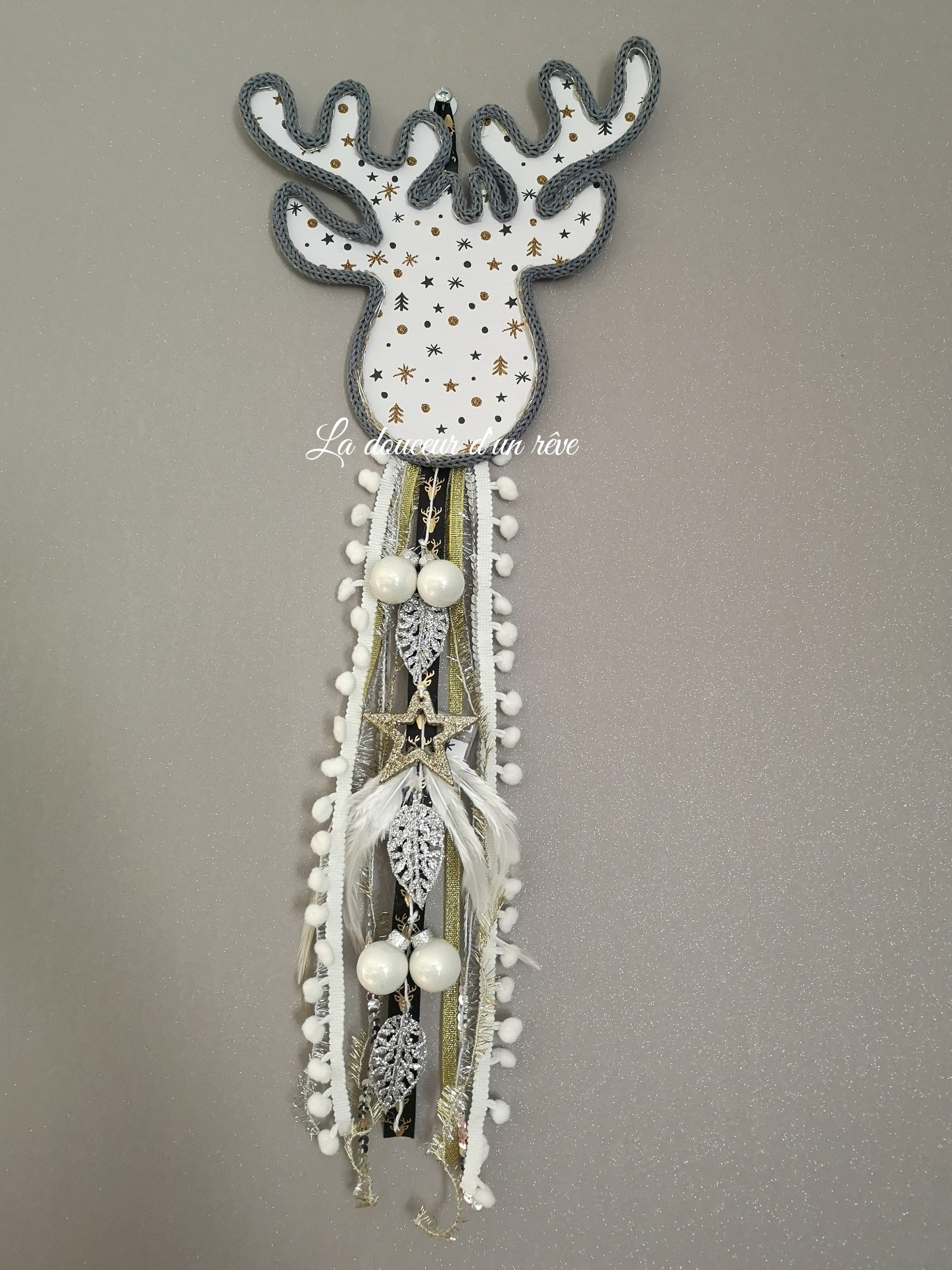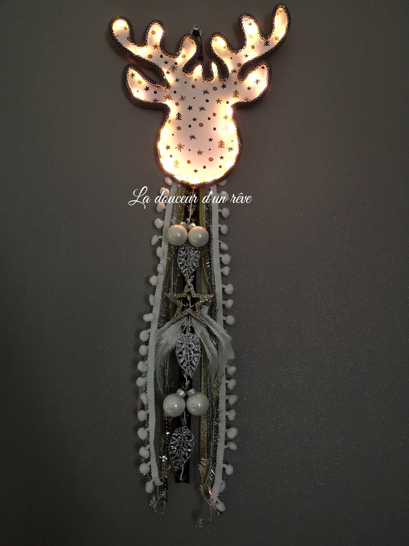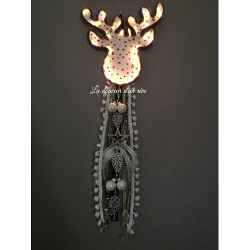 Décoration de Noël en tricotin, tête de cerf lumineux , boule de noël