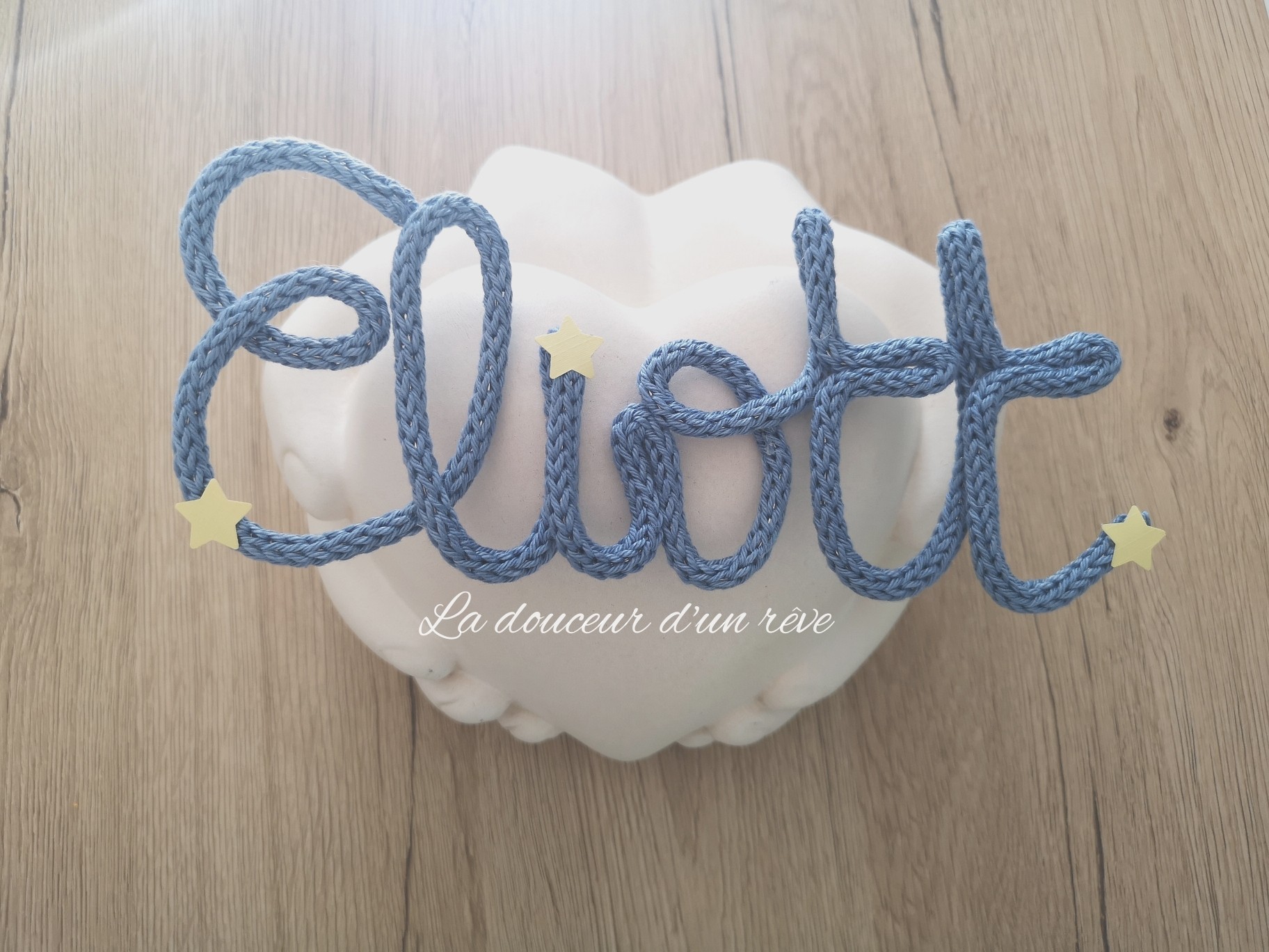 Je vous propose les prénoms ou mot en tricotin fait main.