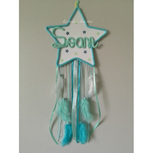 Dimension totale de l'étoile avec les fils : environ 23cm de large sur 52 cm de long. Les attrape rêves étant réalisés à la main, les dimensions peuvent varier un petit peu.