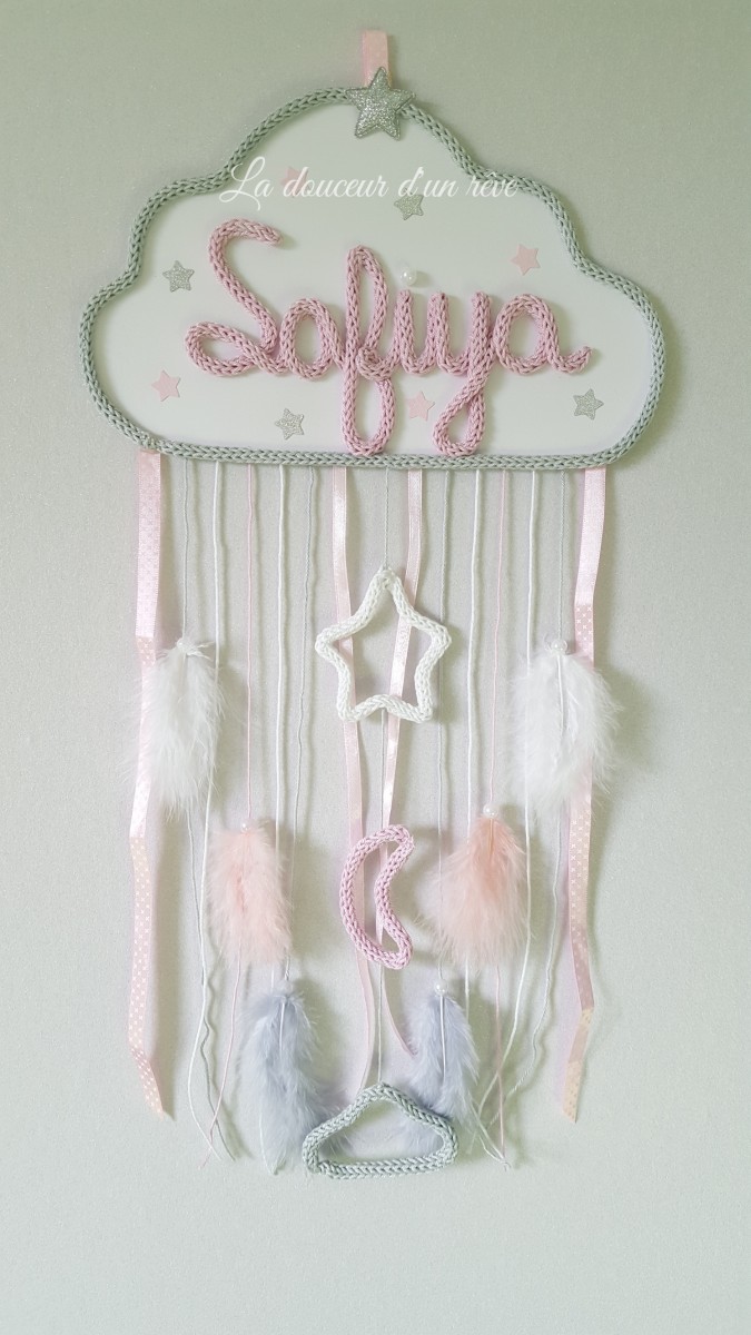 Attrape rêve Nuage en tricotin personnalisable.