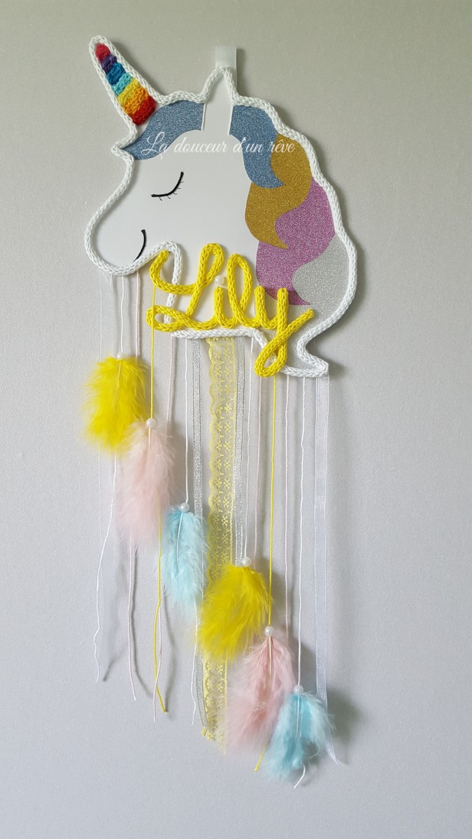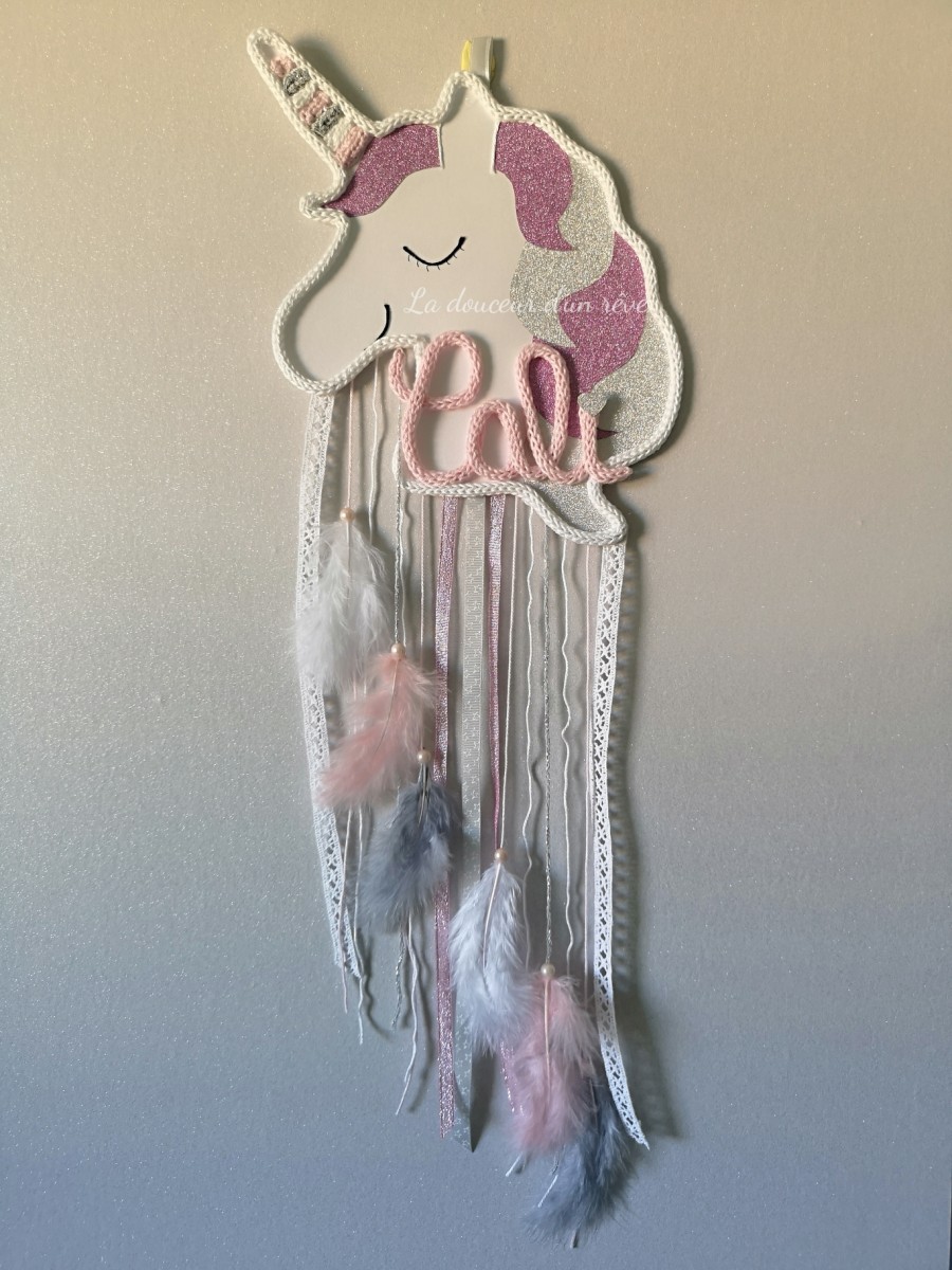 Attrape rêve Licorne magique en tricotin personnalisable.