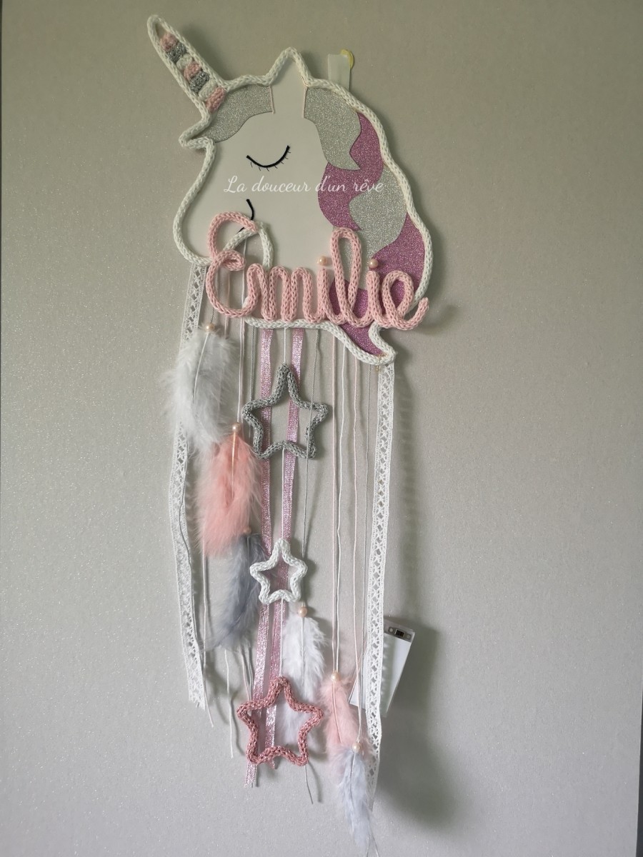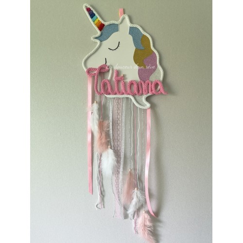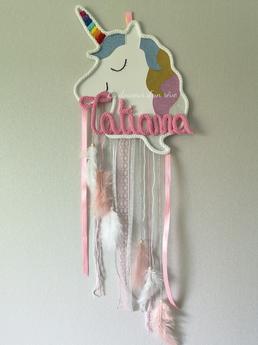 Attrape rêve Licorne magique en tricotin personnalisable.