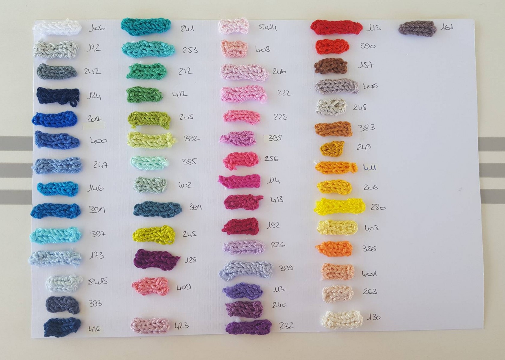 Les fils peuvent varier un peu suivant le stock, mais seront toujours accordés aux couleurs choisies.