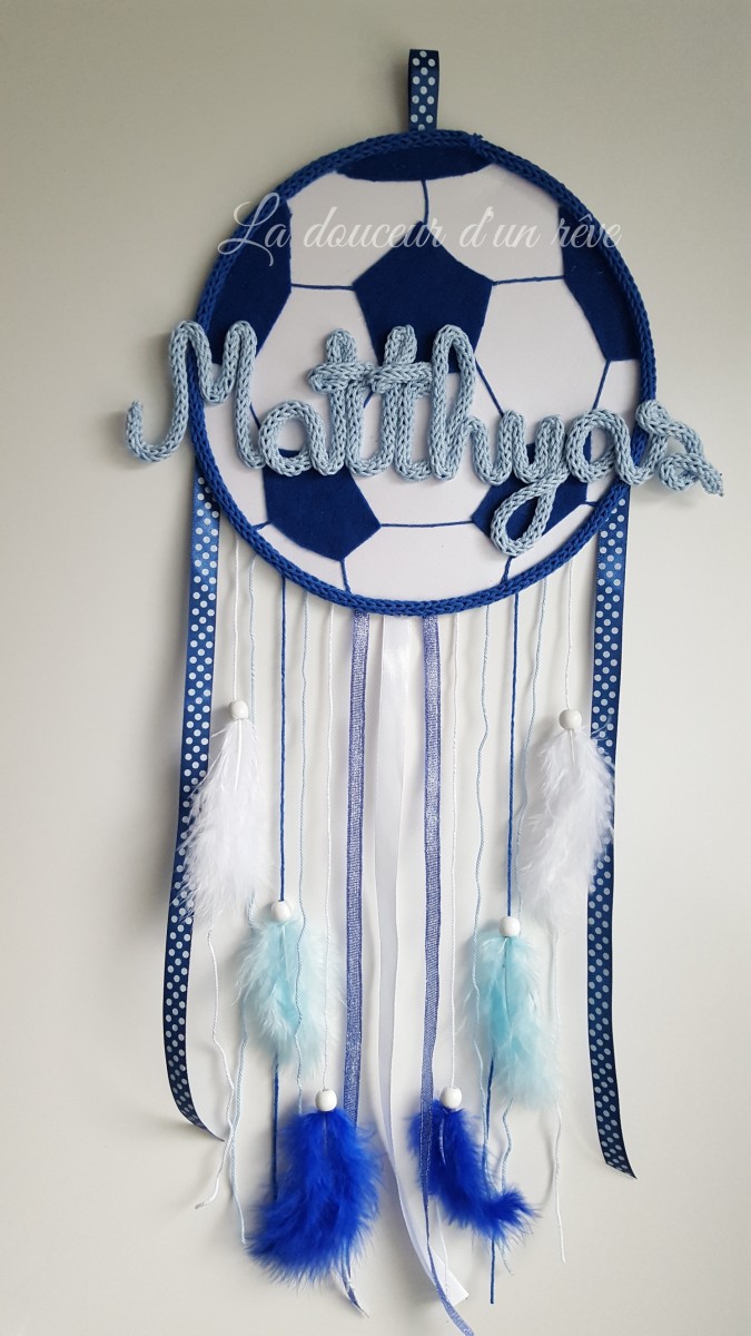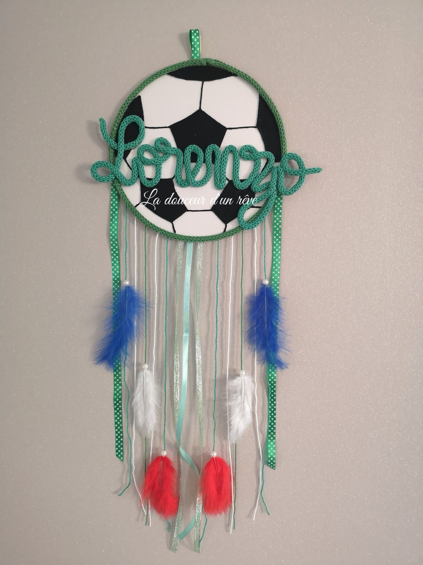 Attrape rêve Ballon de foot en tricotin personnalisable.