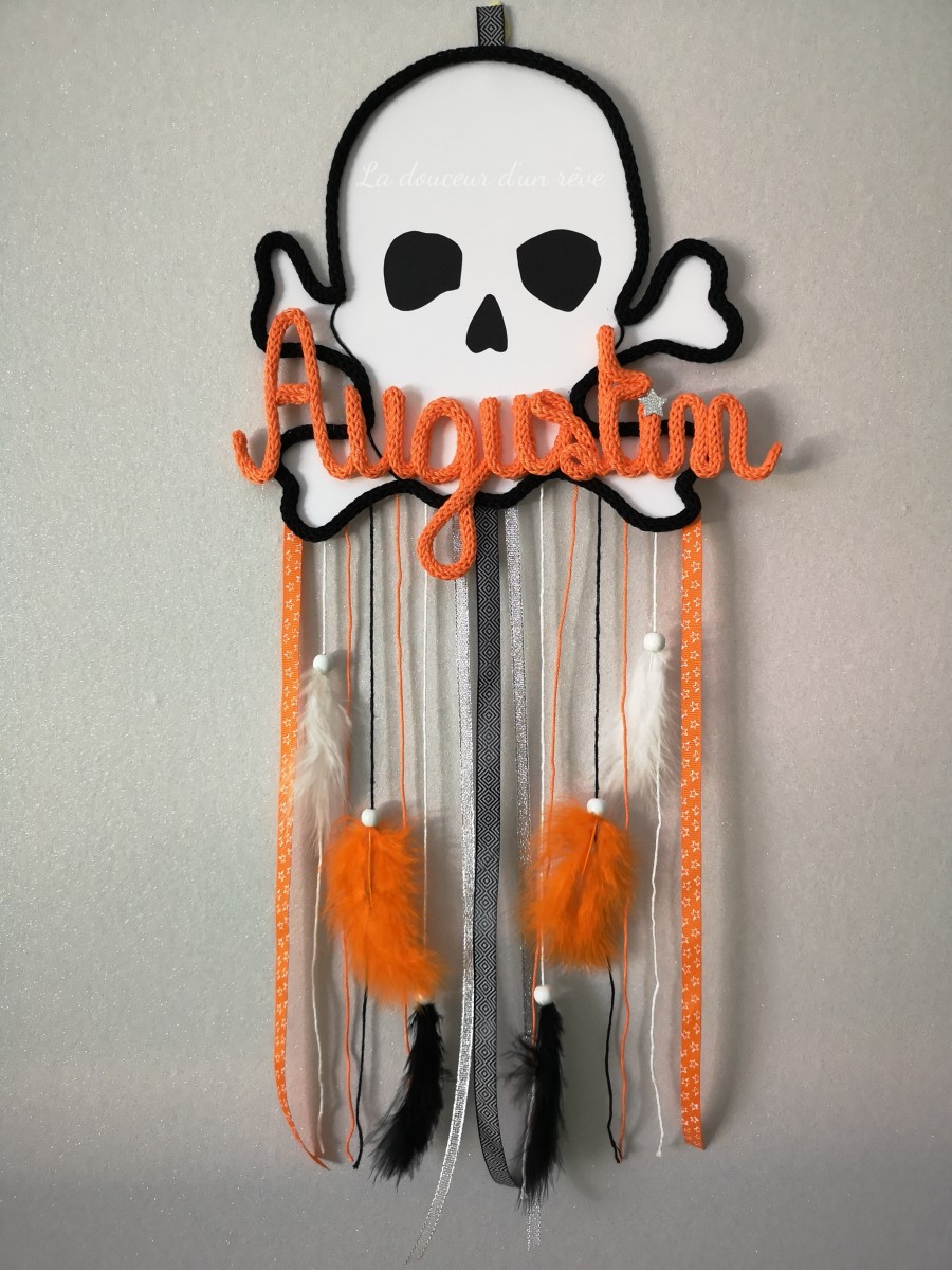 Attrape rêve Tête de mort en tricotin personnalisable.