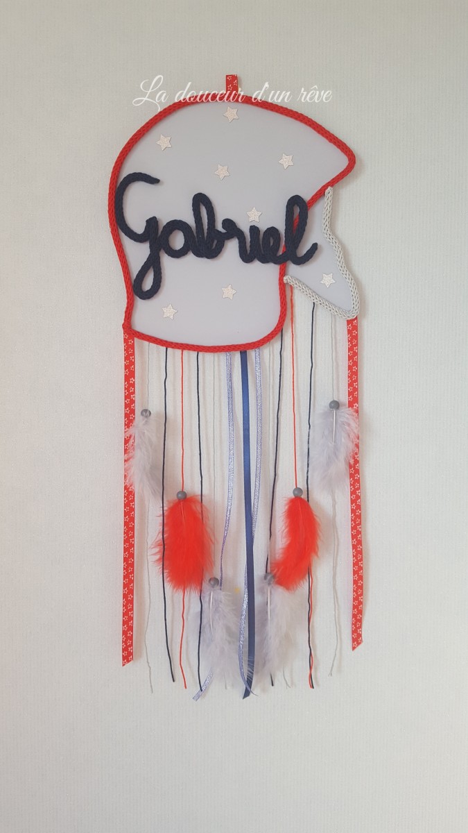Attrape rêve Casque de pompier en tricotin personnalisable.