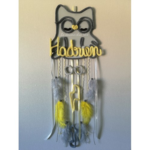 Attrape rêve "Hibou" prénom 6 lettres et plus, tricotin, cadeau plaisir fille garçon chouette