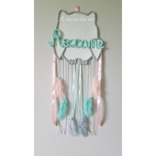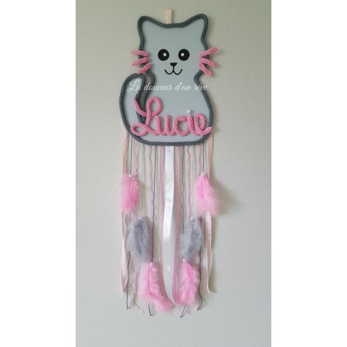 Attrape rêve "Chat" prénom 5 lettres et moins, cadeau décoration chambre bébé