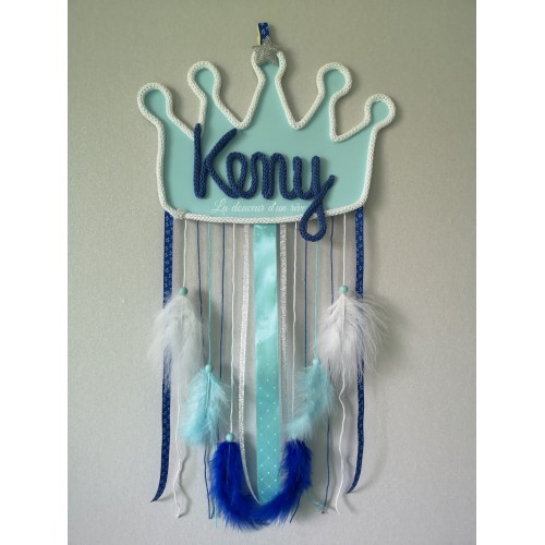 Attrape rêve "Couronne" prénom 6 lettres et plus cadeau surprise strass plaisir fille garçon, tricotin