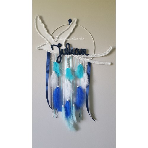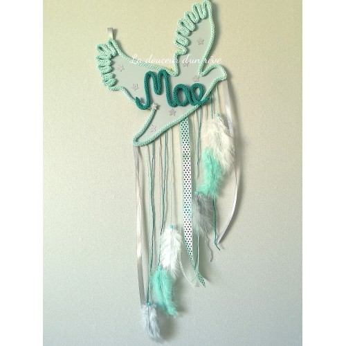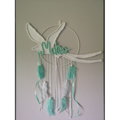Attrape rêve "aile d'ange"prénom 6 lettres et plus, naissance rêveur fille garçon angel guirlande leds, tricotin