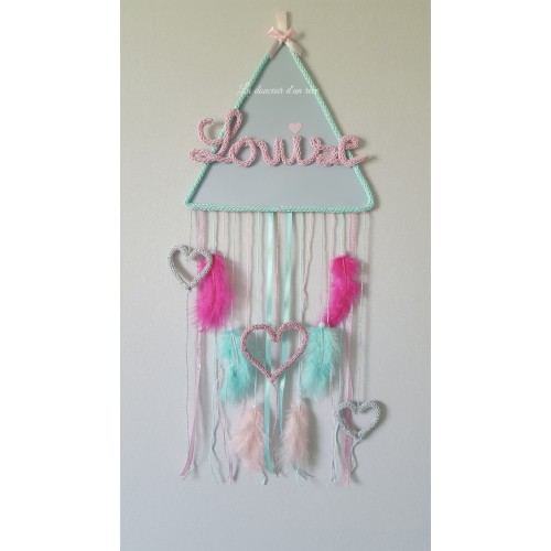 Attrape rêve "Triangle" prénom 6 lettres et plus, tricotin, cadeau plaisir fille garçon tipi