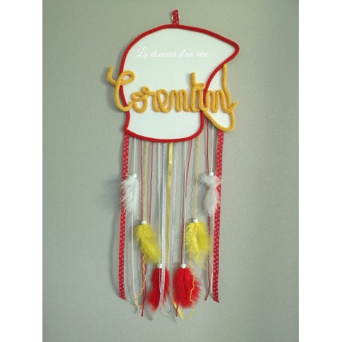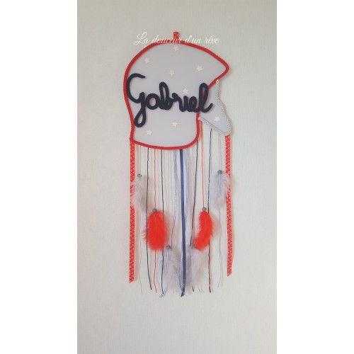 Attrape rêve "Casque de pompier" prénom 6 lettres et plus cadeau tricotin naissance