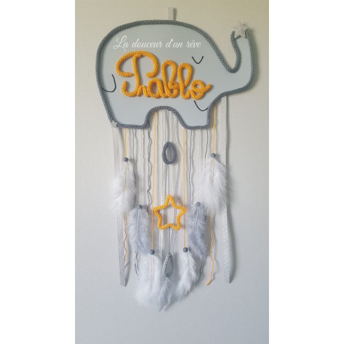 Attrape rêve "Éléphant" prénom 5 lettres et moins cadeau de naissance anniversaire baptême