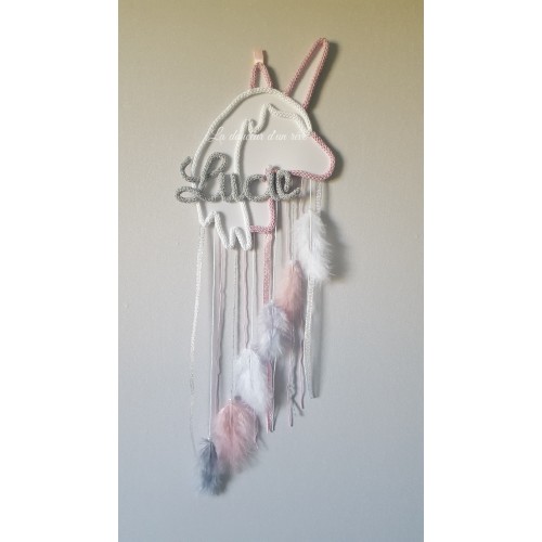Attrape rêve "Nuage" prénom 5 lettres et moins cadeau surprise strass plaisir fille garçon, tricotin