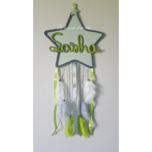 Attrape rêve "Etoile" prénom 5 lettres, et moins, tricotin, fille garçon strass leds cadeau plume surprise