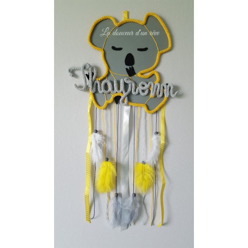 Attrape rêve "Koala" prénom 6 lettres et plus, tricotin, naissance fait main décoration chambre fille garçon nouveau né