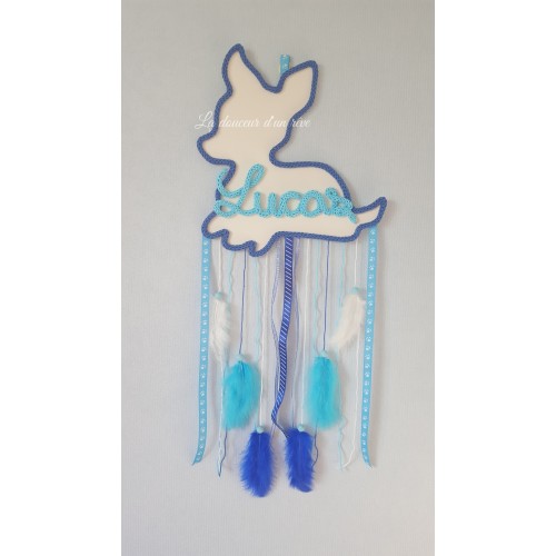 Attrape rêve "Faon" prénom 5 lettres et moins, en tricotin, biche cadeau fille garçon anniversaire baptême