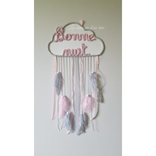 Attrape rêve "Nuage" 2 mots cadeau surprise strass plaisir fille garçon, tricotin, doux rêve, bonne nuit