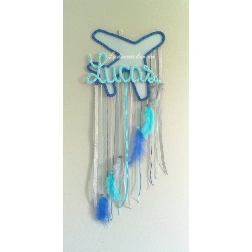 Attrape rêve "Avion" prénom 5 lettres et moins, guirlande lumineuse, cadeau anniversaire