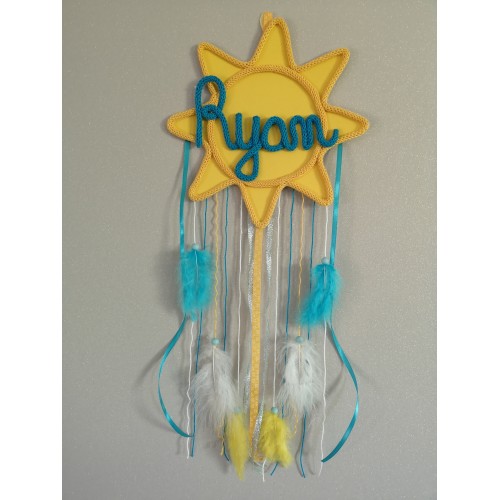 Attrape rêve "Soleil" prénom 6 lettres et plus cadeau surprise strass plaisir fille garçon, tricotin