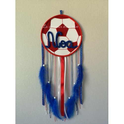 Attrape rêve "Ballon de foot" prénom 6 lettres et plus personnalisé tricotin cadeau anniversaire