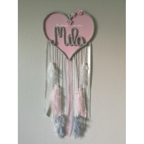 Attrape rêve "Cœur" prénom 6 lettres et plus amour cadeau de famille fille garçon saint valentin