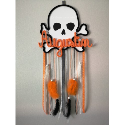 Attrape rêve "Tête de mort" prénom 6 lettres et plus décoration chambre enfant cadeau fille, pirate